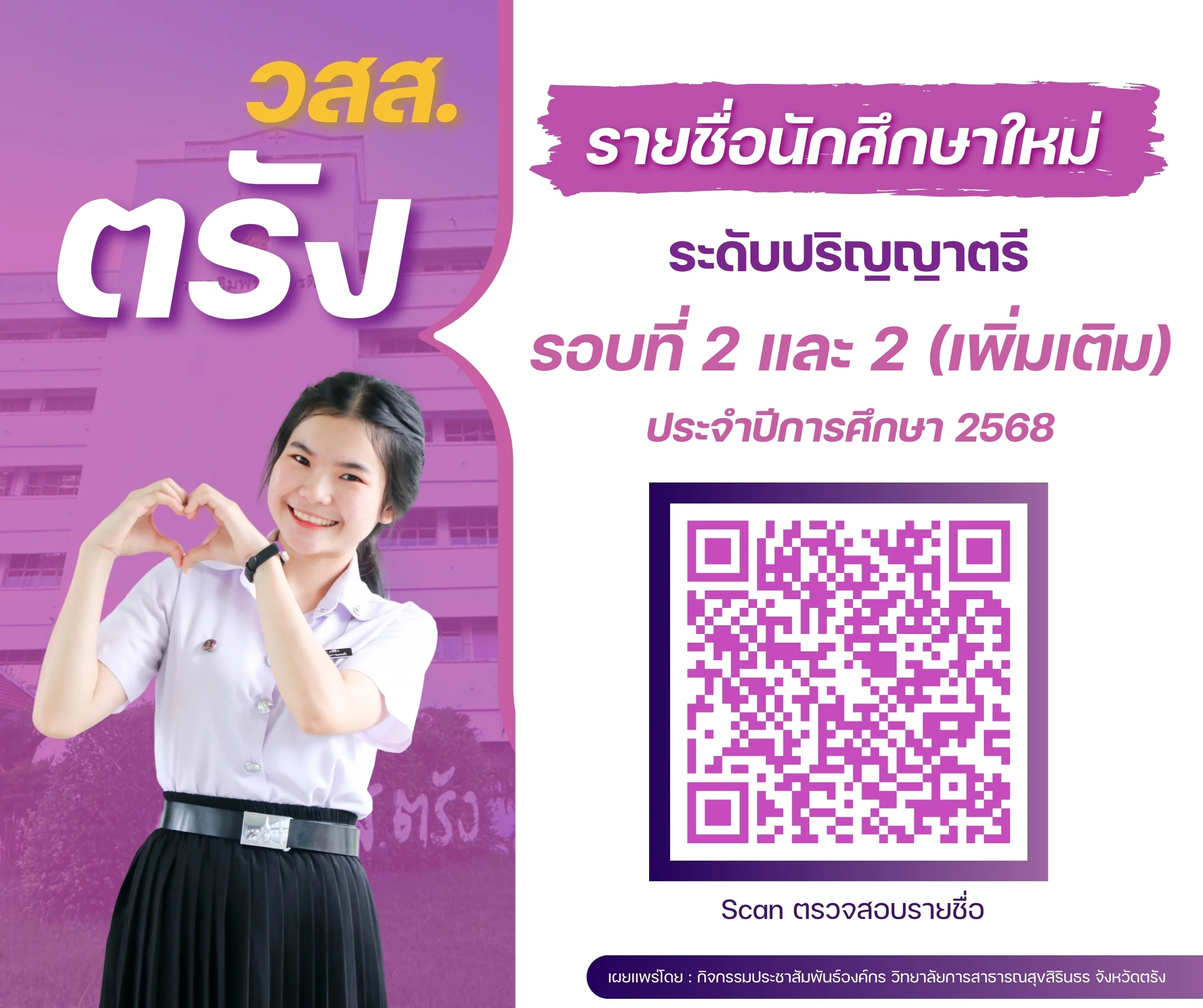 ข่าวการศึกษา รายชื่อผู้ผ่านการคัดเลือกเข้าศึกษาหลักสูตรผู้ช่วยสาธารณสุขคณะสาธารณสุขศาสตร์และสหเวชศาสตร์ อ่านต่อ » มิถุนายน 13, 2025