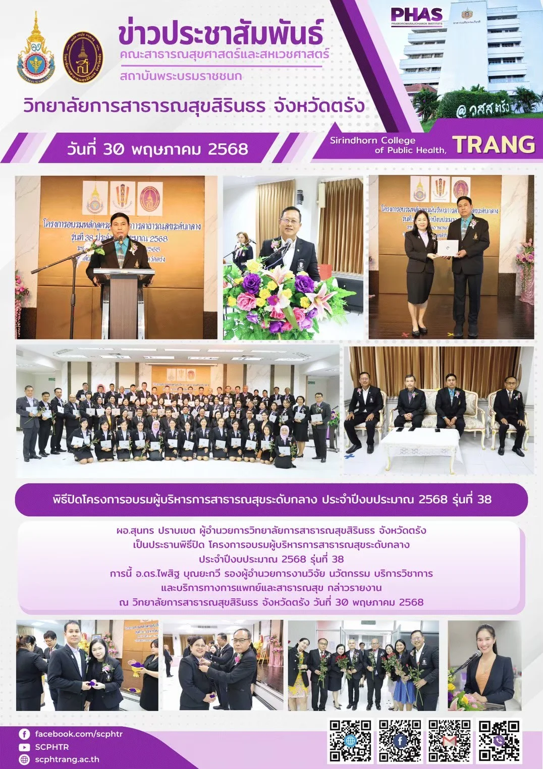 ข่าวประชาสัมพันธ์ พิธีปิดโครงการอบรมผู้บริหารการสาธารณสุขระดับกลาง ประจำปีงบประมาณ 2568 รุ่นที่ 38 อ่านต่อ » สิงหาคม 27, 2025