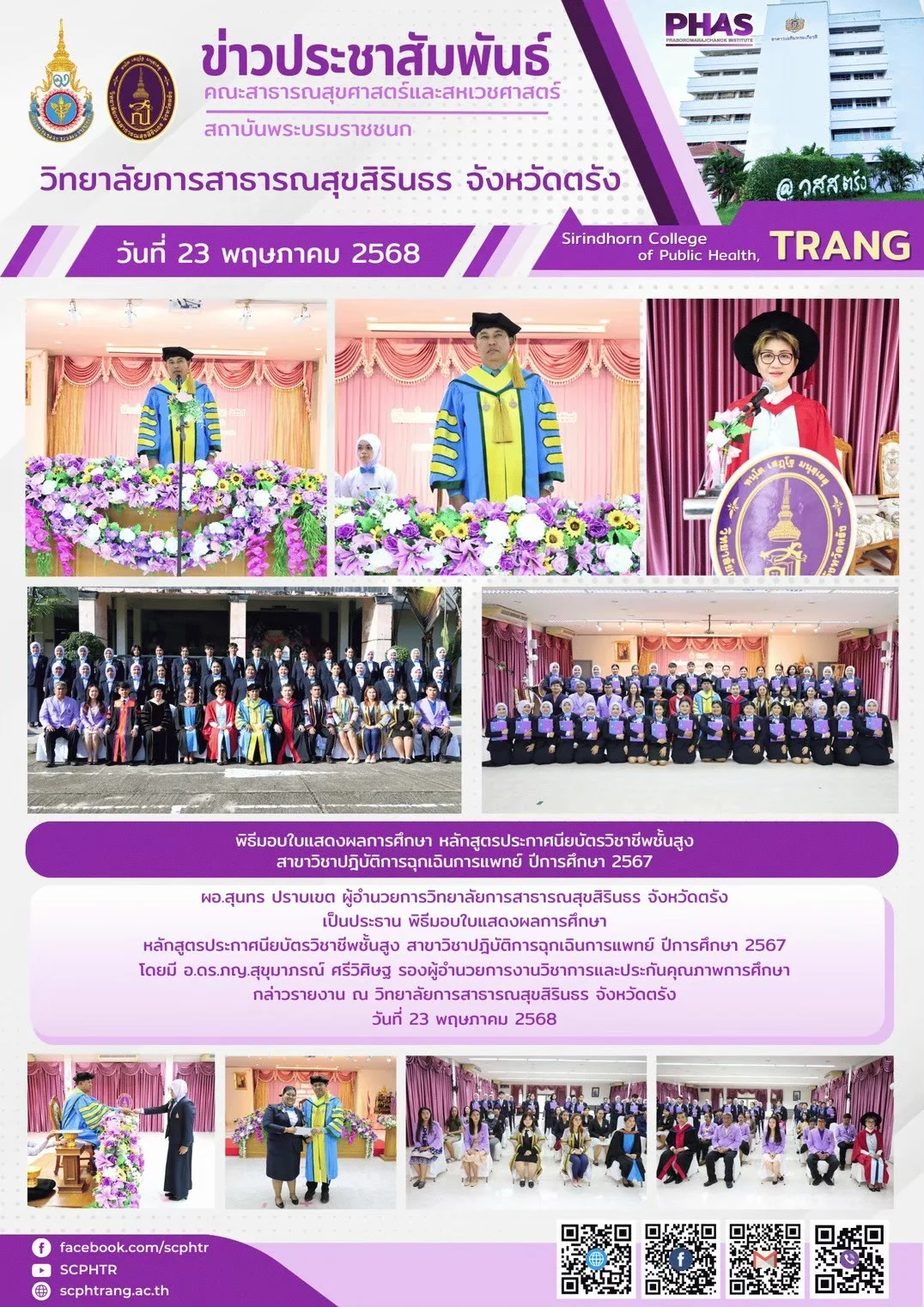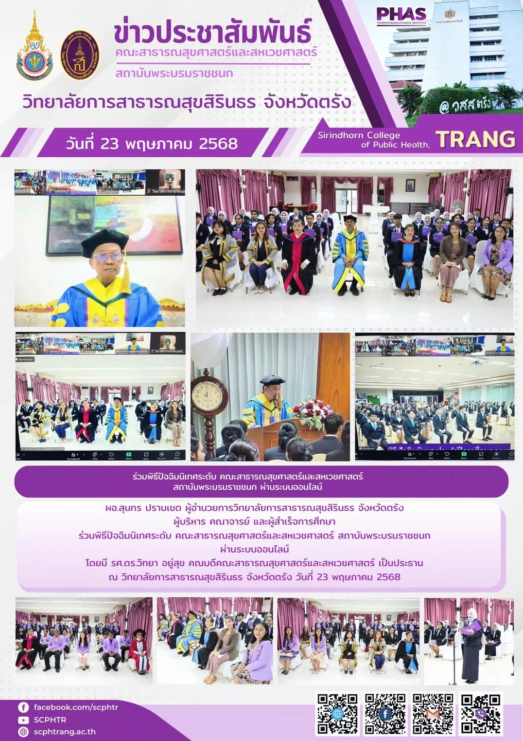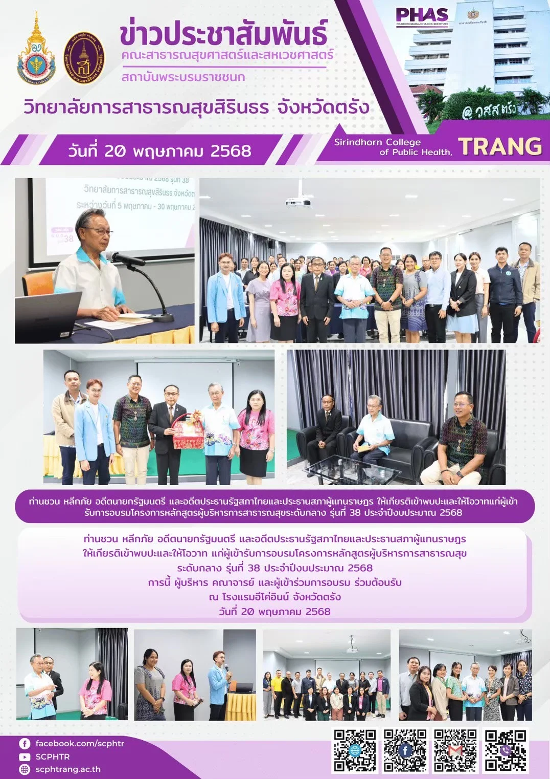 ข่าวประชาสัมพันธ์ ร่วมพิธีปัจฉันนิเทศระดับ คณะสาธารณสุขศาสตร์และสหเวชศาสตร์สถาบันพระบรมราชชนก ผ่านระบบออนไลน์ อ่านต่อ » สิงหาคม 27, 2025