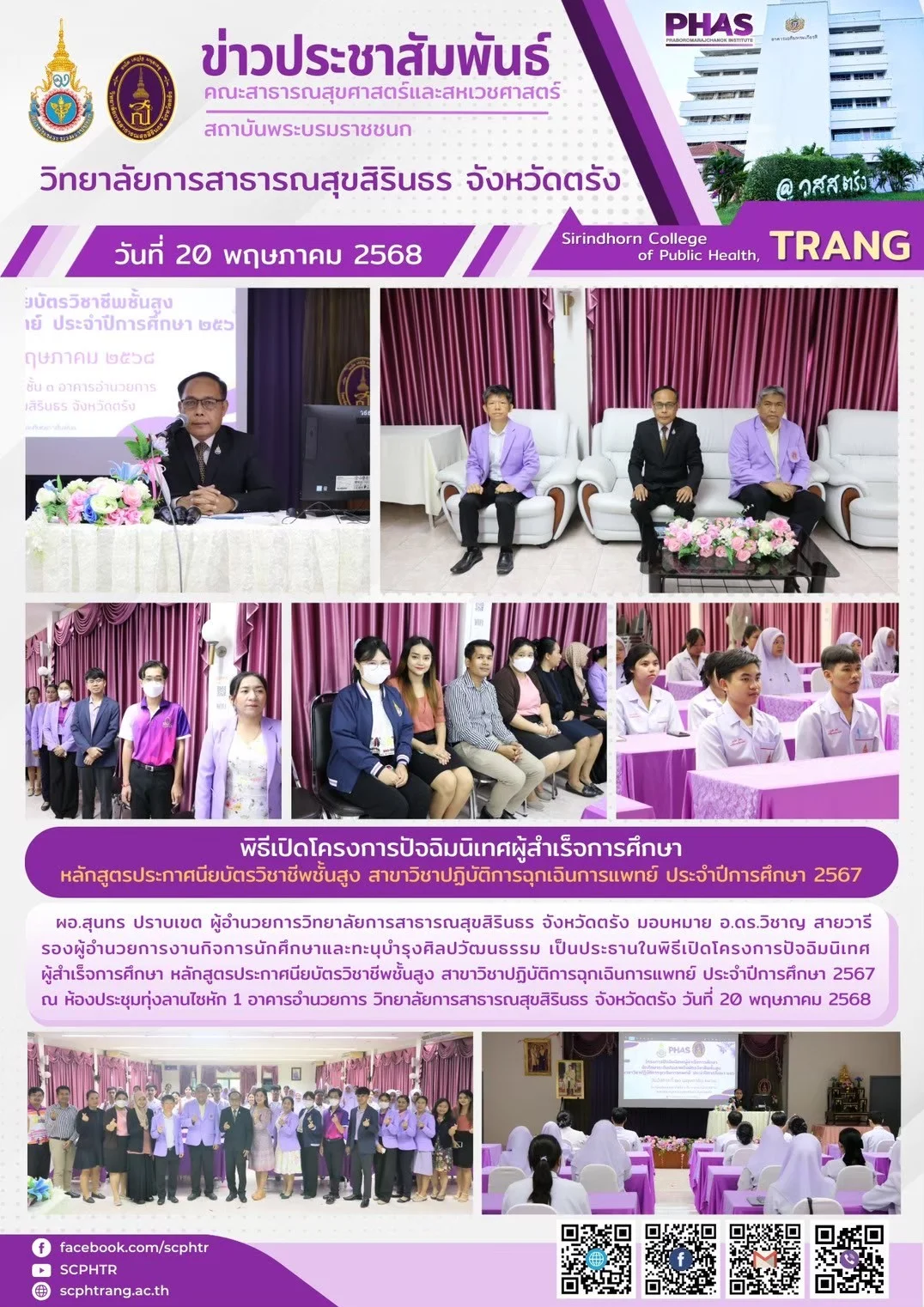 ข่าวประชาสัมพันธ์ พิธีเปิดโครงการปัจฉิมนิเทศผู้สำเร็จการศึกษาหลักสูตรประกาศนียบัตรวิชาชีพชั้นสูง สาขาวิชาปฏิบัติการฉุกเฉินการแพทย์ ประจำปีการศึกษา 2567 อ่านต่อ » สิงหาคม 27, 2025