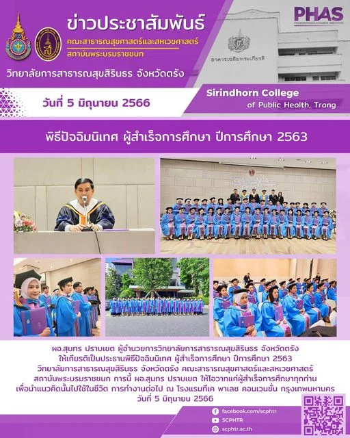 พิธีปัจฉิมนิเทศ ผู้สำเร็จการศึกษาปีการศึกษา 2563 วิทยาลัยการสาธารณสุขสิรินธร จังหวัดตรังคณะสาธารณสุขศาสตร์และสหเวชศาสตร์ สถาบันพระบรมราชชนก