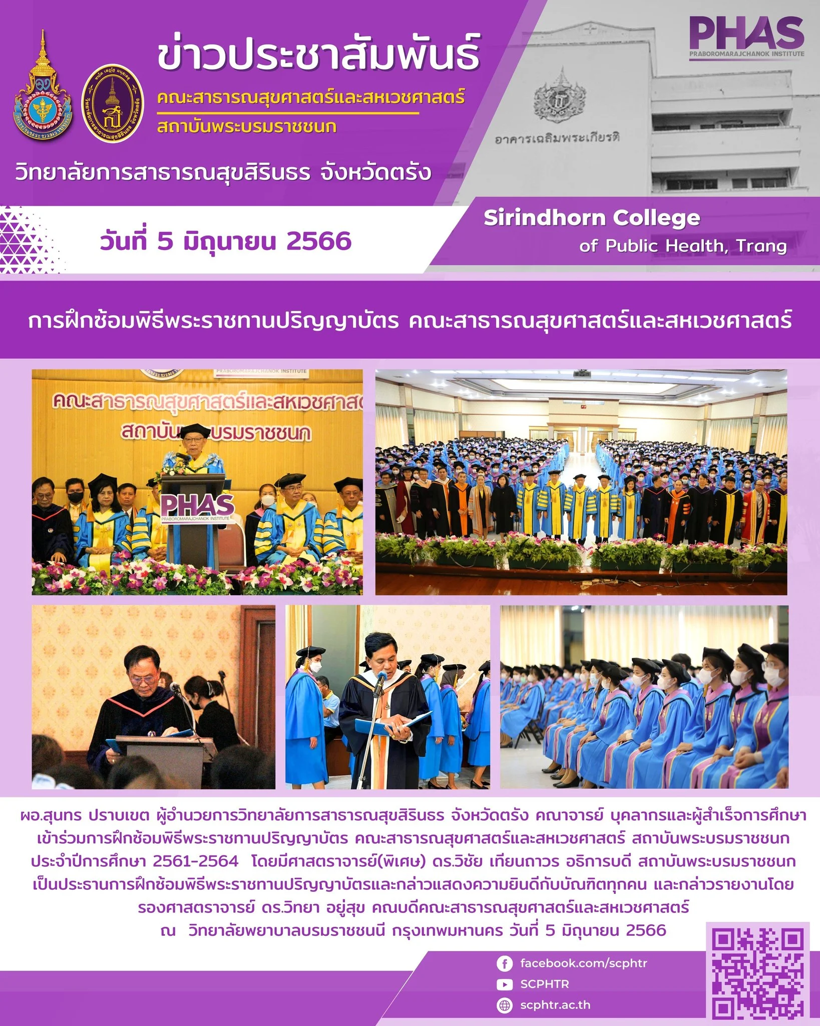 การฝึกซ้อมพิธีรับพระราชทานปริญญาบัตรคณะสาธารณสุขศาสตร์และสหเวชศาสตร์ สถาบันพระบรมราชชนก