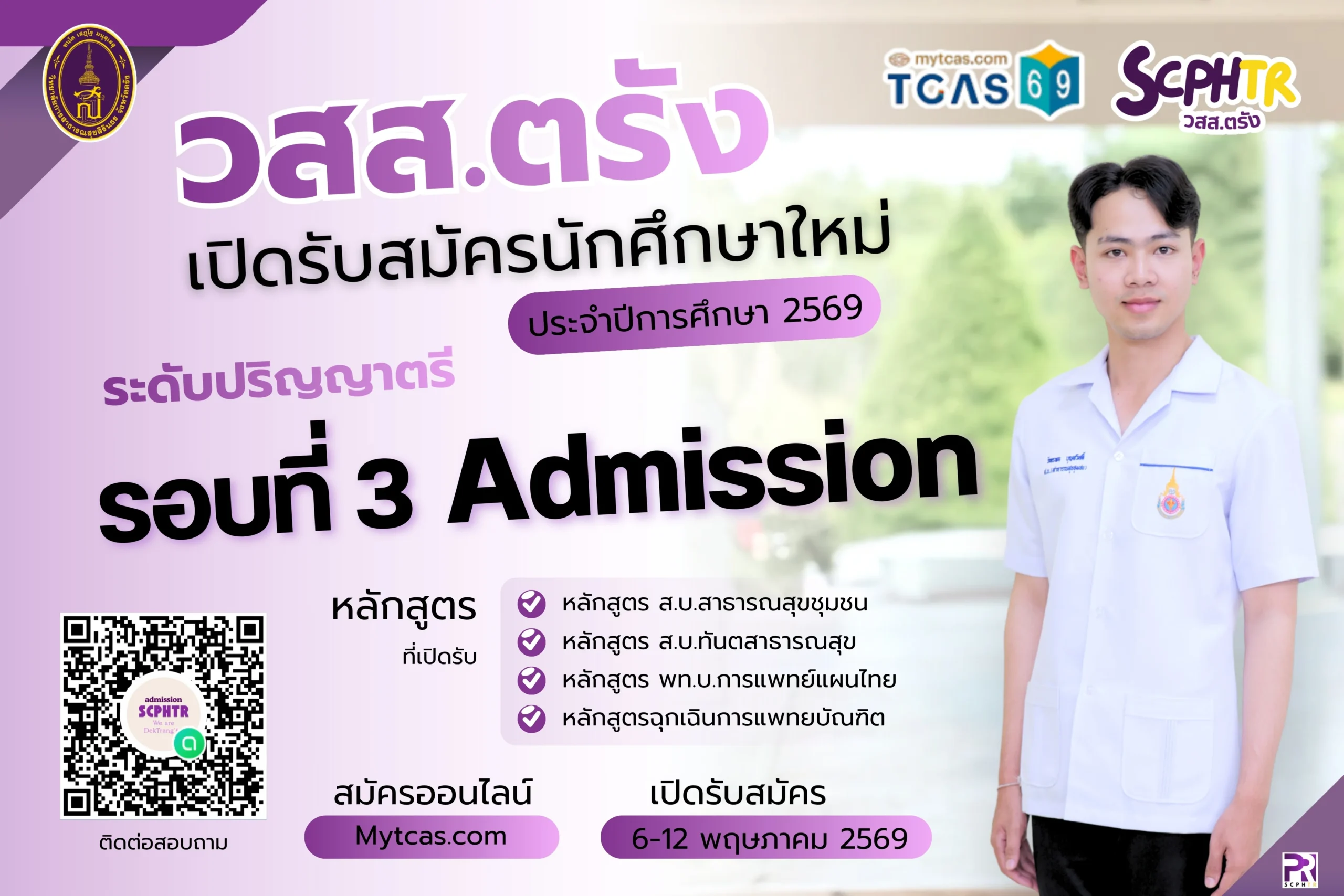 🚩ประกาศรับสมัครนักศึกษา ปีการศึกษา 2569 (รอบที่ 3 Admission) ระดับปริญญาตรี (ป.ตรี) ⭐คณะสาธารณสุขศาสตร์และสหเวชศาสตร์