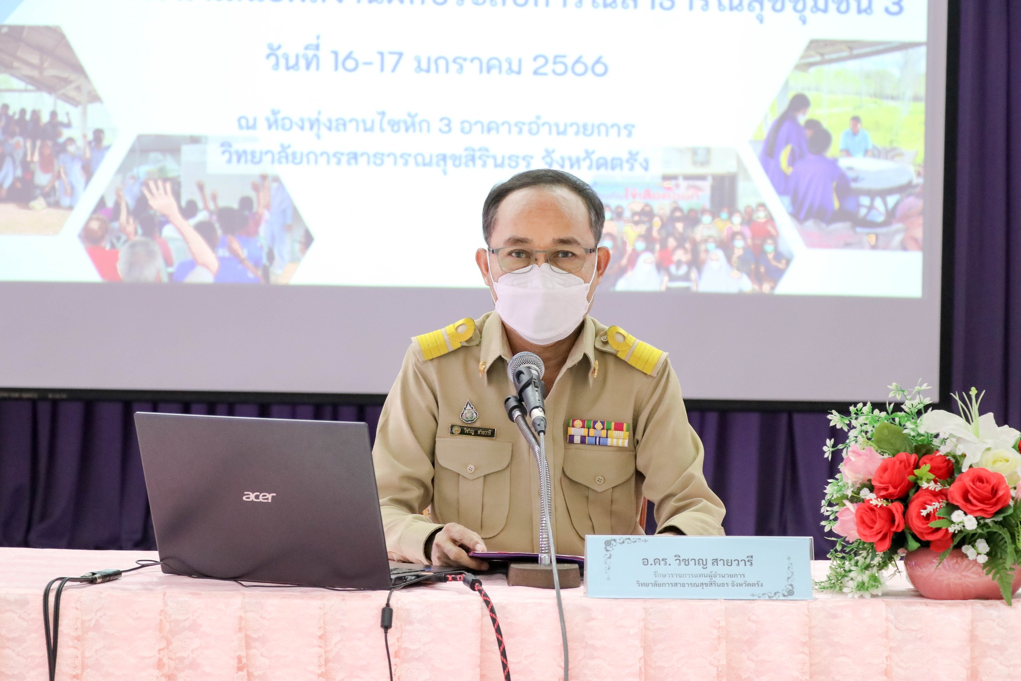 โดยมี ดร.วิชาญ สายวารี รองผู้อำนวยการ กลุ่มกิจการนักศึกษา รักษาราชการแทนผู้อำนวยการ วิทยาลัยการสาธารณสุขสิรินธร จังหวัดตรัง เป็นประธานในพิธีเปิด ณ ห้องประชุมทุ่งลานไซหัก ๑ ชั้น ๓ อาคารอำนวยการ วันที่ ๑๖ มกราคม ๒๕๖๖