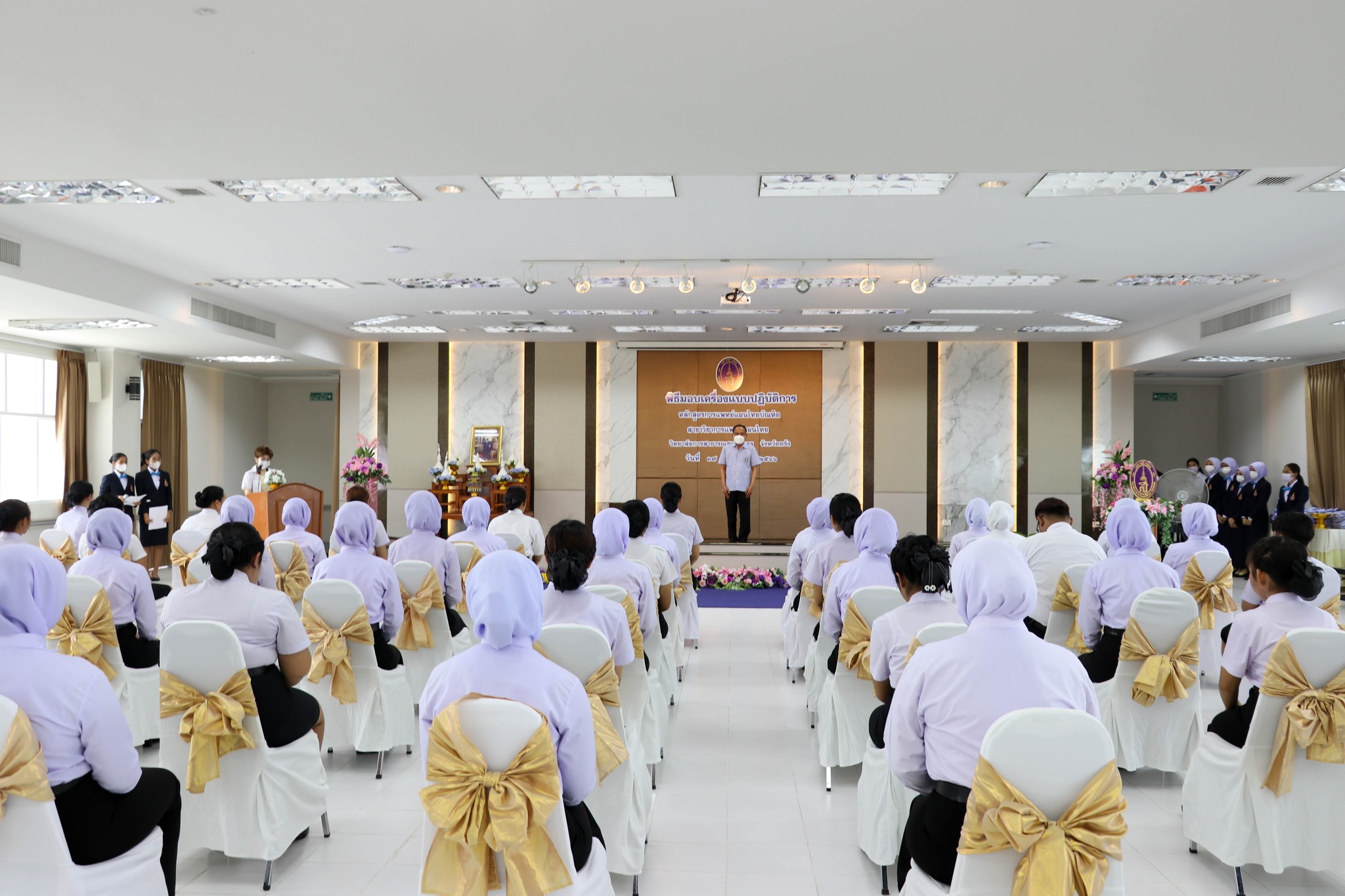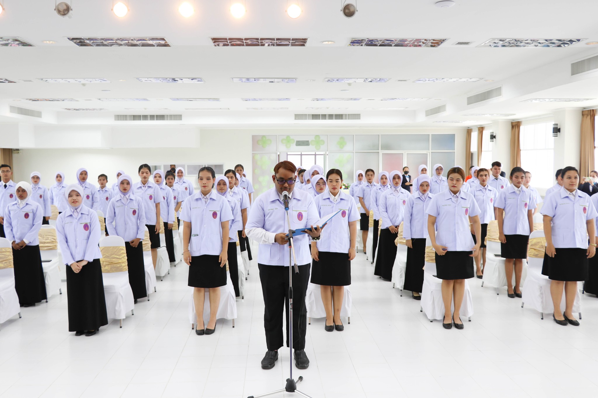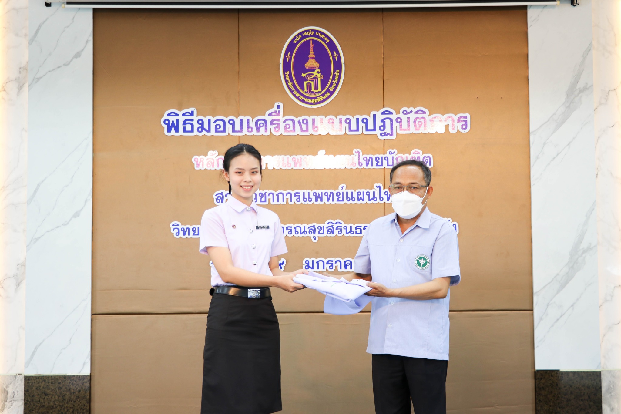 อ.ดร.วิชาญ สายวารี รองผู้อำนวยการกลุ่มกิจการนักศึกษา เป็นประธานในพิธีมอบเครื่องแบบปฏิบัติการ หลักสูตรแพทย์แผนไทยบัณฑิตสาขาวิชาการแพทย์แผนไทยณ ห้องประชุมสิรินธรวลี๑ ชั้น ๖ อาคารเฉลิมพระเกียรติ วิทยาลัยการสาธารณสุขสิรินธร จังหวัดตรัง