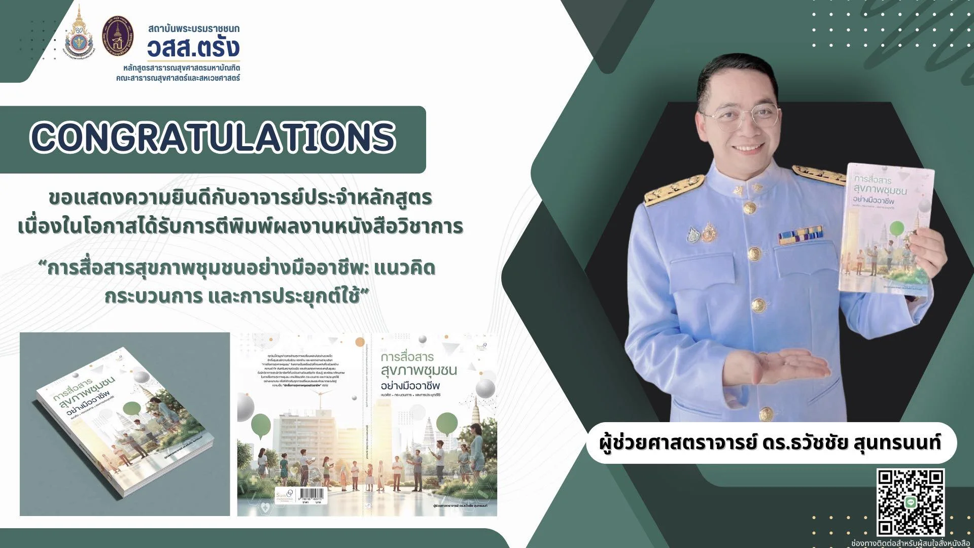 อาจารย์ ขอแสดงความยินดีกับอาจารย์ประจำหลักสูตรเนื่องในโอกาสได้รับการตีพิมพ์ผลงานหนังสือวิชาการ”การสื่อสารสุขภาพชุมชนอย่างมืออาชีพ: แนวคิดกระบวนการ และการประยุกต์ใช้” กุมภาพันธ์ 16, 2026 ไม่มีความเห็น